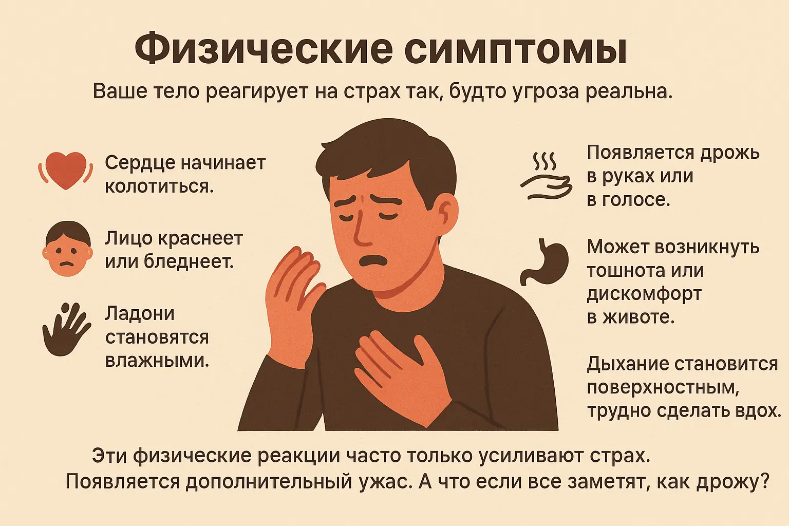 Эти физические реакции часто только усиливают страх. Появляется дополнительный ужас. А что если все заметят, как я дрожу?